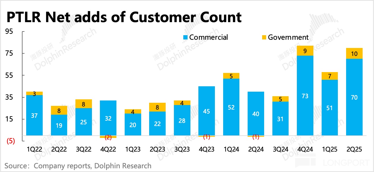 判斷的核心邏輯,就是通過看運營指標,來認定 Palantir 在可觸達市場中的產品競爭優勢並未發生變化。因此回過來看 Q2 的情況,關於合同額新增/剩餘、新客户滲透,以及老客户粘性所對應的指標來看,均是環比進一步改善的健康狀態。由此説明,Palantir 所處的仍然是景氣度無需擔憂的前沿位置。