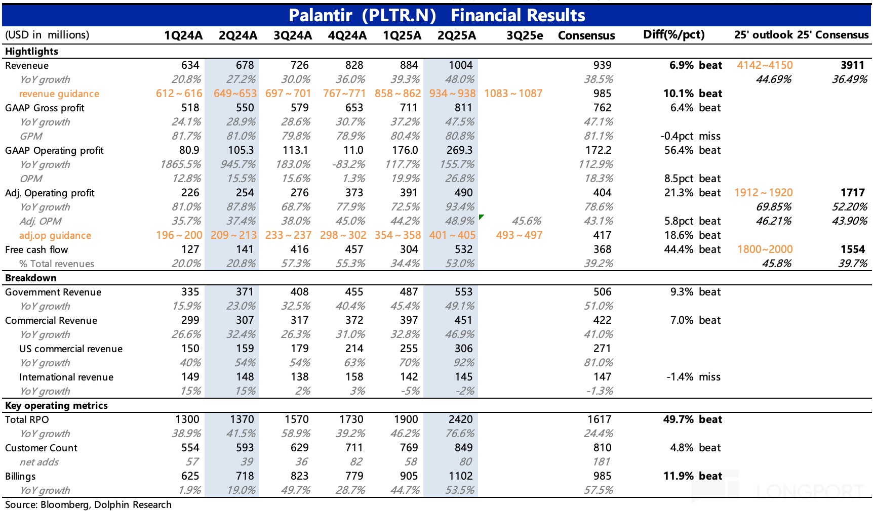 - Palantir 發佈 2025 年二季度業績,整體表現亮眼。