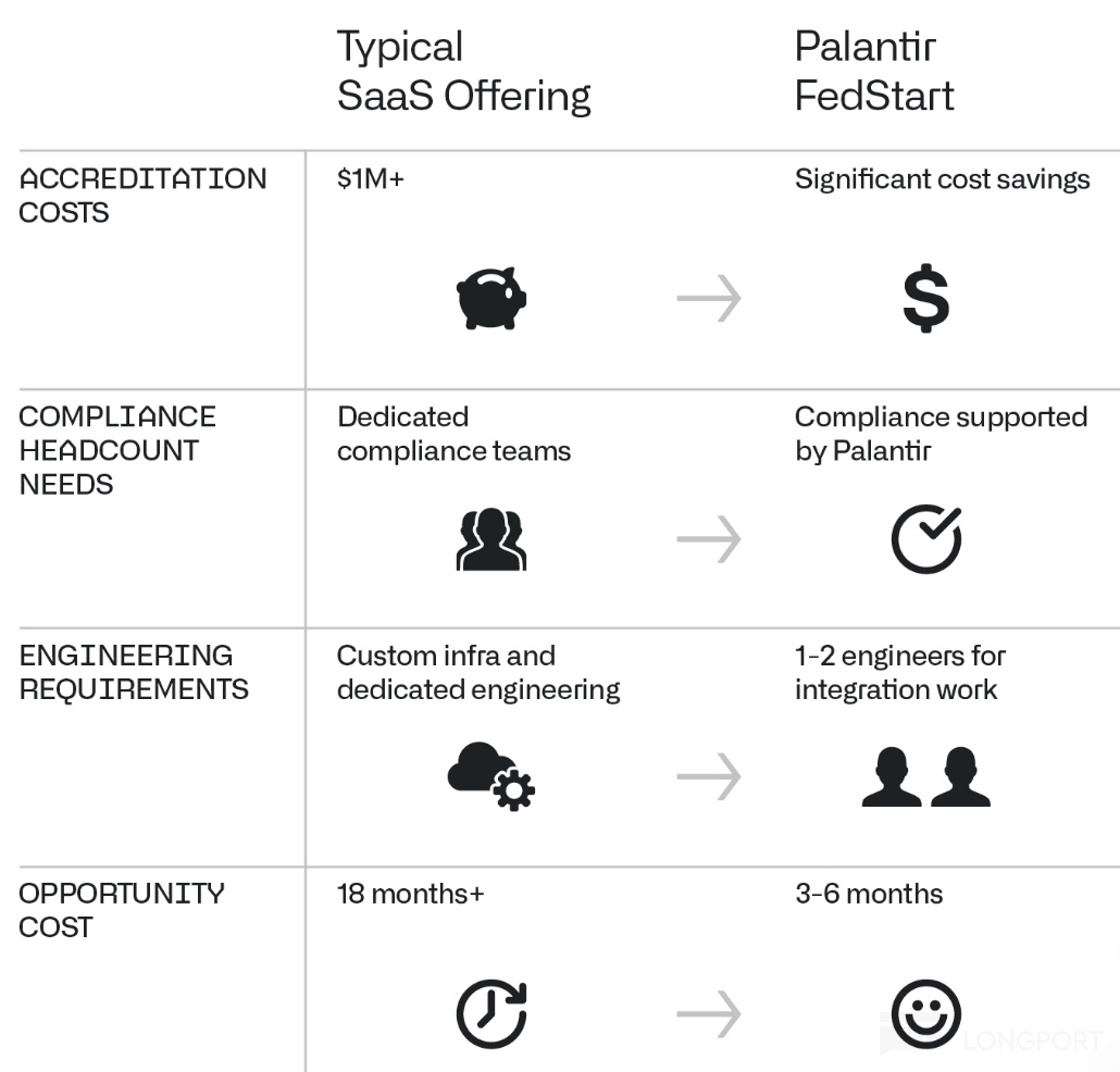 但政府對軟件合規要求極高,中小軟件商需要承擔較高的審查合規成本。Palantir 還專門提出了 FedStart 計劃: