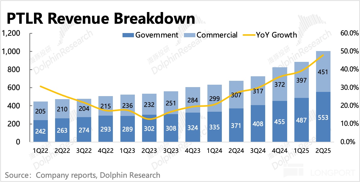 2. 政府增長無憂:二季度政府收入同比增長 43%,依舊是高景氣。環比看略微減速,不過政府收入並非線性趨勢變化,因此短期波動是常態。在當下政府對 AI 態度以及對國防開支的重視度,未來增長基本無憂。