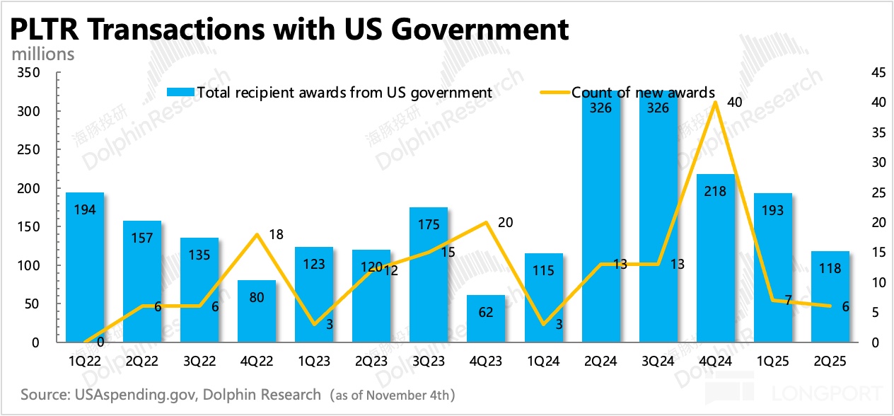 美國政府本季度主要新簽了兩個合同,一個是美國太空部隊 2.18 億美元訂單,支持多域作戰協同(Maven 智能系統合同);另一個是是與陸軍簽署的十年價值 100 億美元的合同(整合原有 75 份零散合同),深化長期合作。