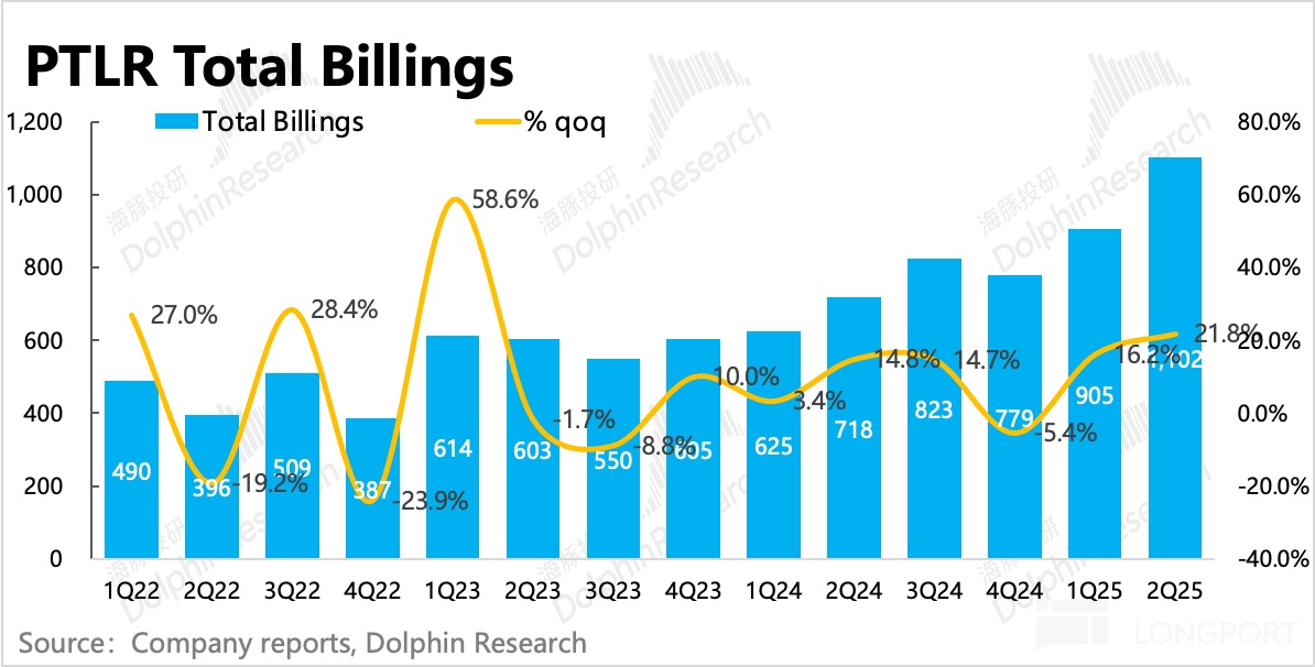而 Palantir 的訂單狀況非常良好,轉化新客户的同時,老客户還在升級付費,説明 Palantir 的產品競爭力依然領先,核心邏輯並未有削弱。