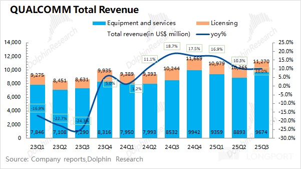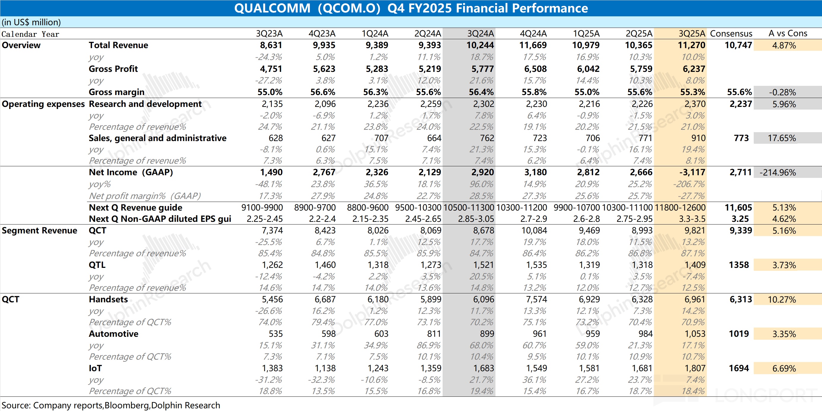 QCOM 發佈了 2025 財年第四季度財報(截止 2025 年 9 月),要點如下: