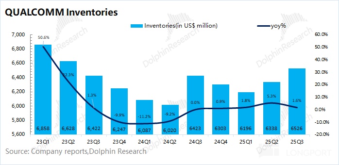 高通在 2025 財年第四季度(即 25Q3)的存貨有 65.3 億美元,同比略增 1.6%。通常下半年往往是電子產品的旺季,而公司需要備貨以應對客户需求,當前公司的存貨狀況相對合理。