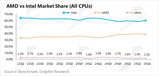公司寄希望於 AI PC 能成為公司一個新的增長點,然而當前公司在 PC 市場份額仍很低,不足 1%,還難以形成對英特爾和 AMD 的競爭。