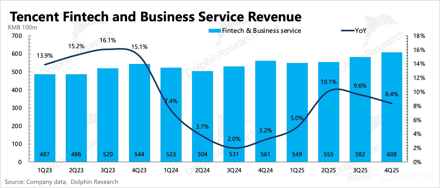 四季度消費環境依舊不佳,騰訊廣告則繼續保持近 18% 的增速,略微不及 BBG 一致預期,不過年初以來部分機構考慮到消費寡淡,已經小幅下調了廣告預期。