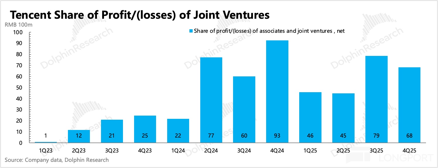 關於投資利得,海豚君基於原指標定義(2025 年之前的確認範圍),主要看其他收益淨額(包含投資收益),以及分佔聯營/合營公司盈利兩個部分。