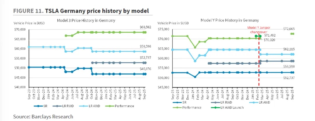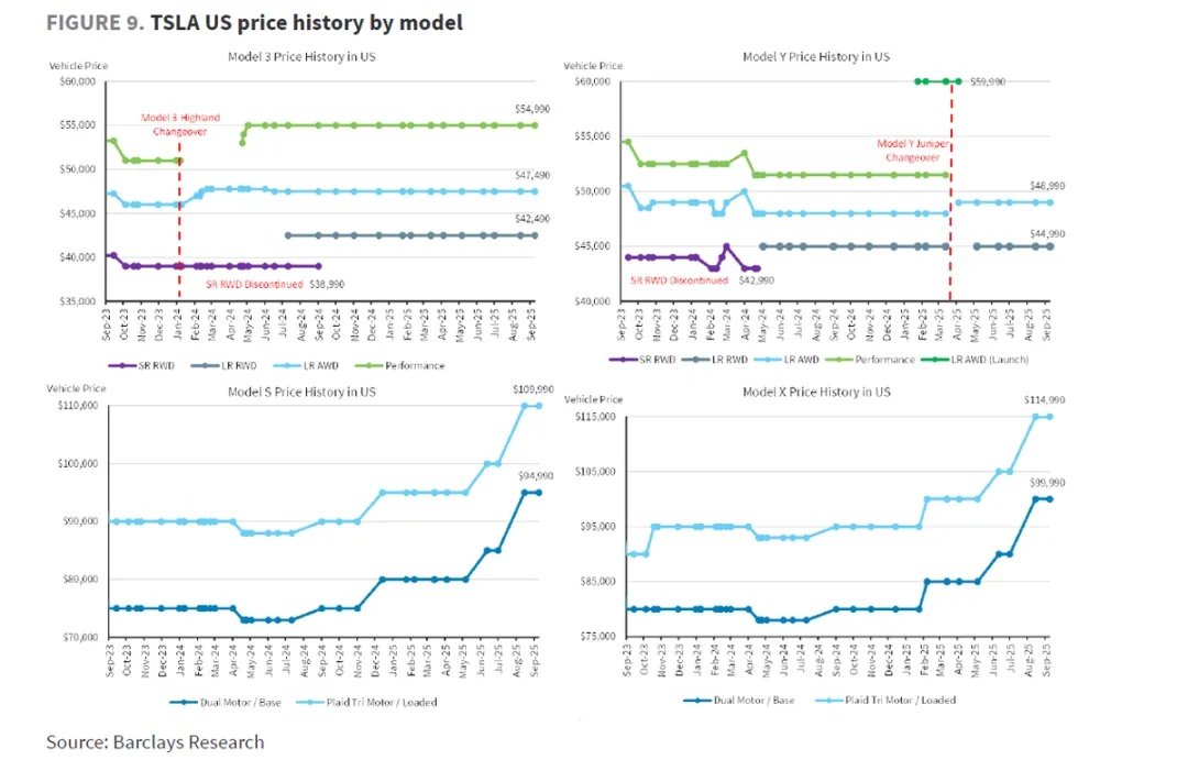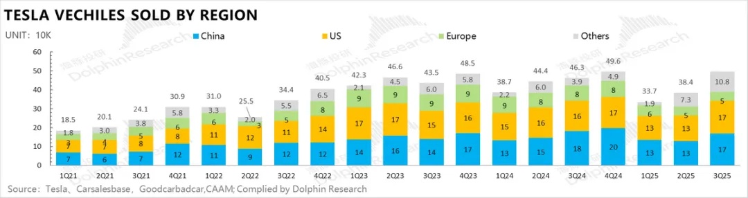 3)歐洲市場: 歐洲市場三季度表現較為一般,主要還是由於貿易戰下消費者對美國產品的整體迴避,以及 CEO 埃隆・馬斯克涉足政治引發的品牌聲譽受損。