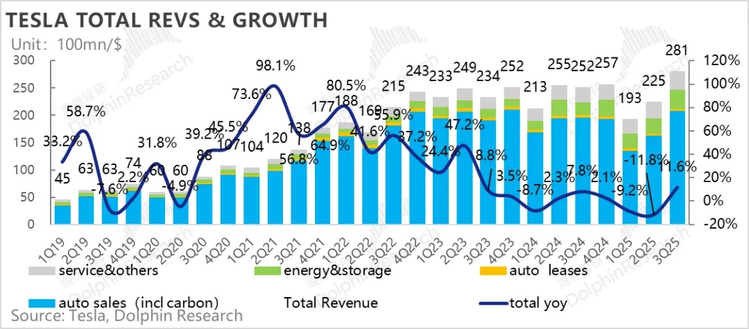 - 特斯拉 2025 年第三季報顯示總收入 281 億,超出市場預期 272 億。