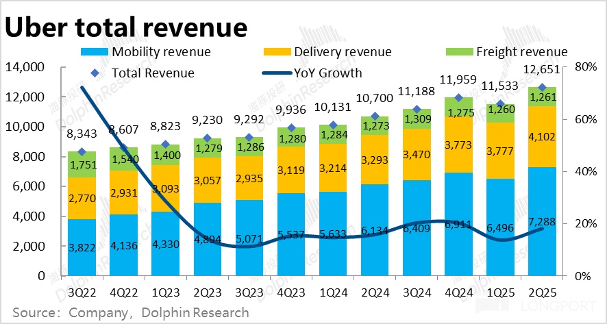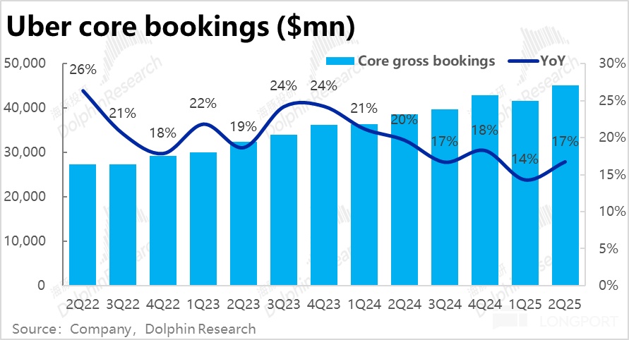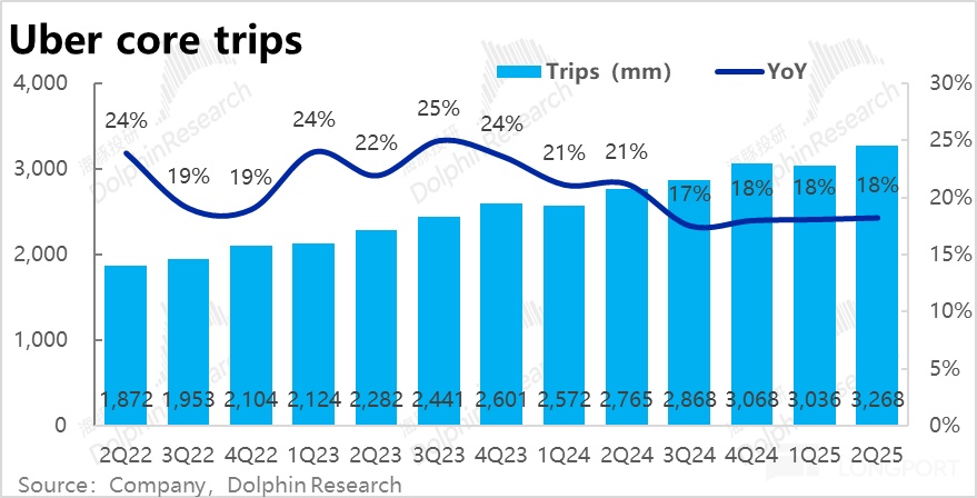 - 優步在2025年 Q2財報中,網約車業務訂單額增速低於預期。