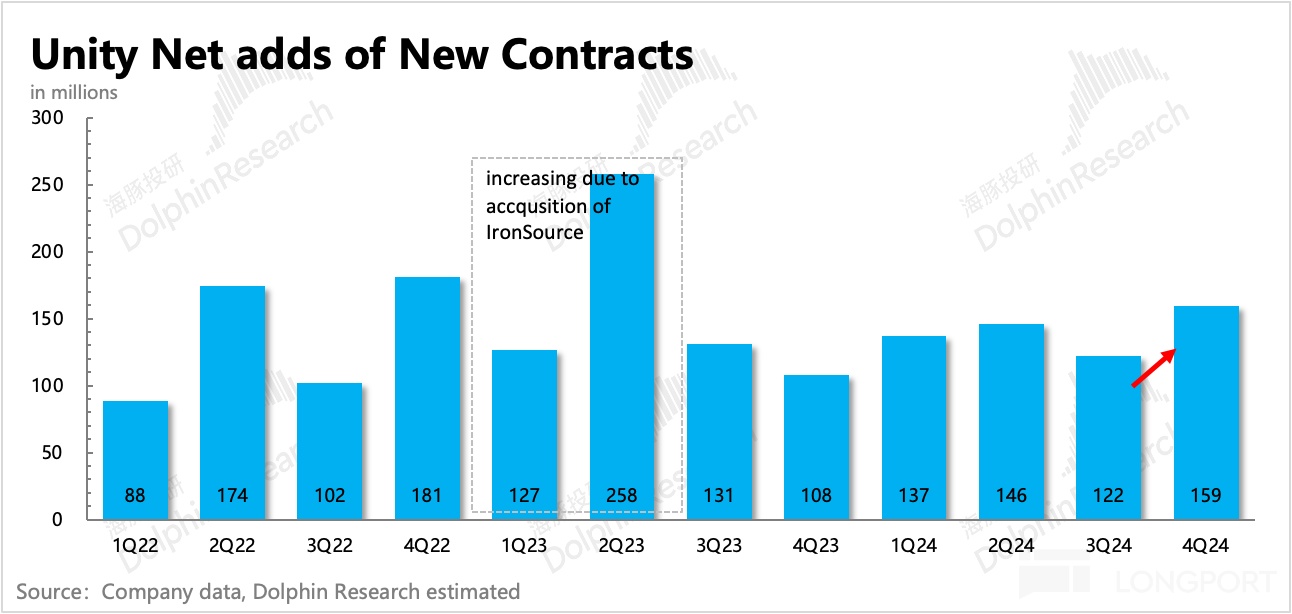 Unity 6 沒太多爭議,去年發佈以來,存量客户遷移率逐季提高,包括其中的三款 AI 功能(Muse、Sentis、AI Navigation2.0)的採用率也在提升,帶動引擎訂閲收入持續保持雙位數的增長。