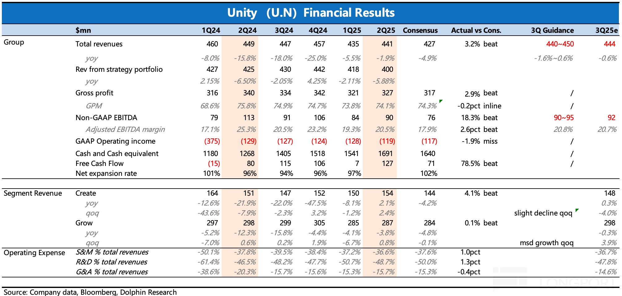 - Unity Software 發佈 2025 年二季度業績,整體符合預期。