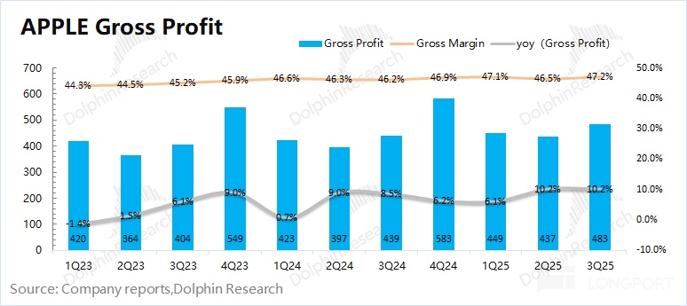 1.2 毛利率:2025 财年第四季度(即3Q25)苹果公司毛利率47.2%,同比增加1pct,市场一致预期(46.6%) 。公司毛利率的提升,主要是受软件业务毛利率提升以及结构性的带动。