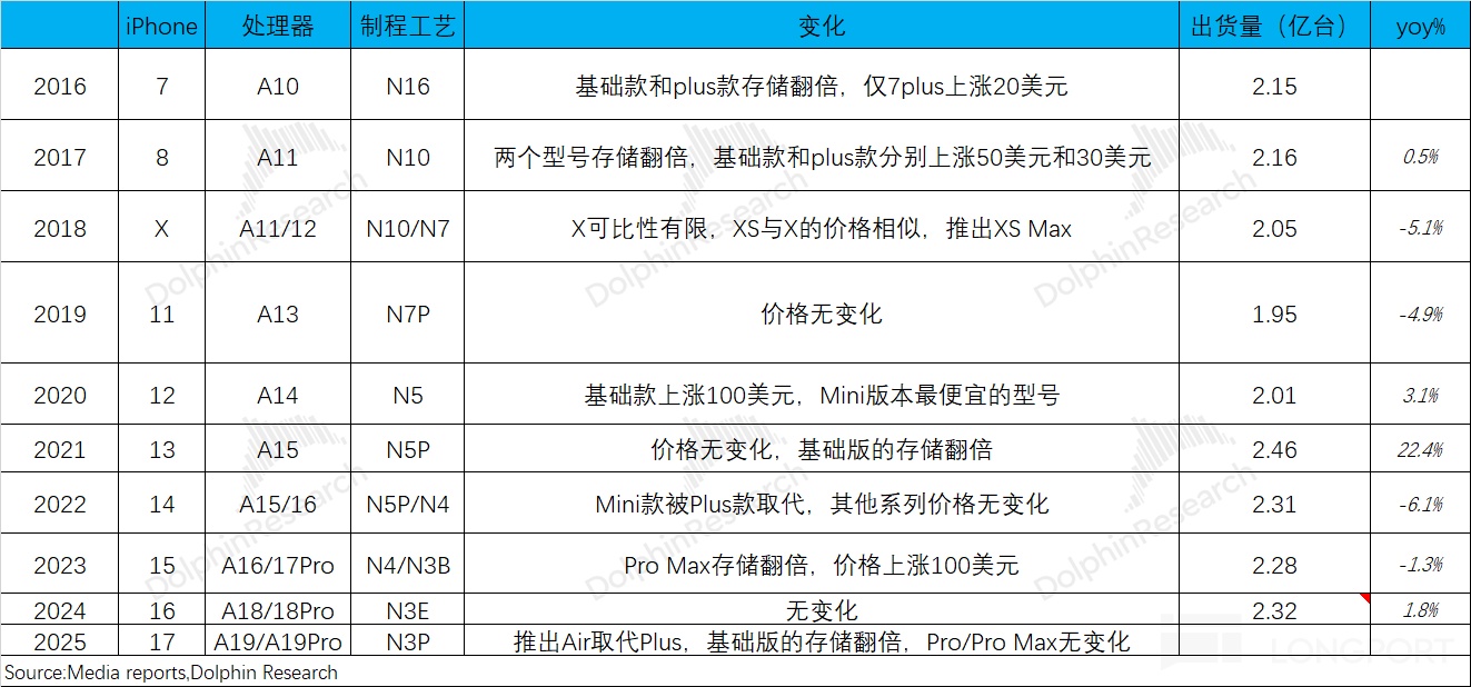 b)秋季新品发布会:iPhone17 系列新品发布,主要的变化是“推出Air 取代Plus,基础版的存储翻倍”。苹果公司依然维持着“小修小改” 的操作,并没有带来AI 方向的“亮点”。