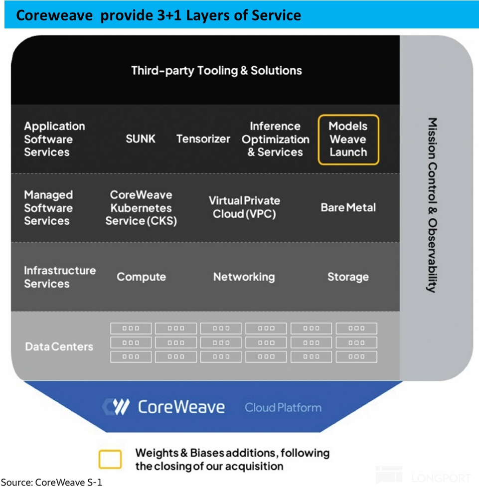 但从中长期角度, CoreWeave 要继续在行业内保持独特竞争力,或者说要优化客户和收入结构,减少对大客户的依赖,那么就必须增加大量传统或中小型企业客户,而这些客户的技术实力显然不会很强,此时作为服务商的CoreWeave 就必须要能够提供比较优异技术/软件服务。
