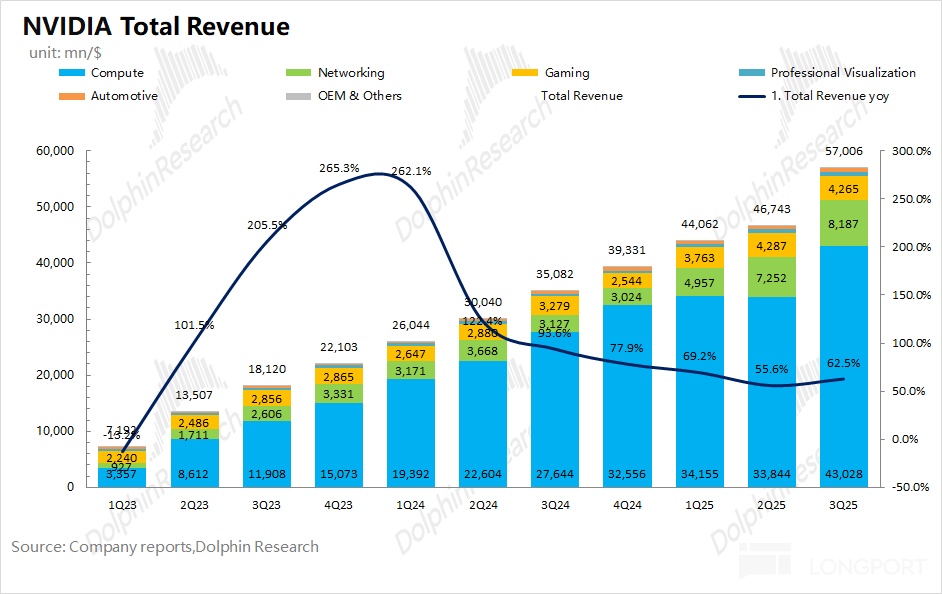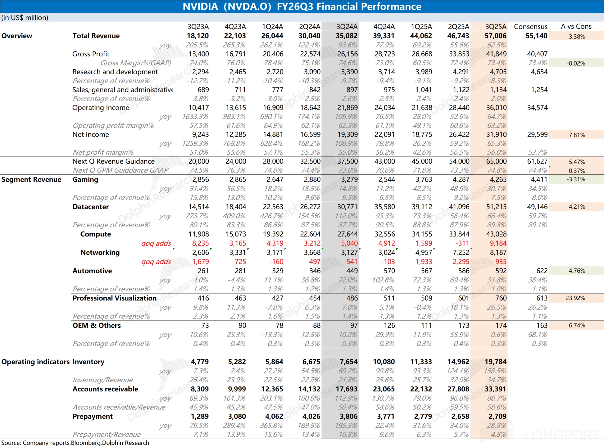 - 英伟达发布2026 财年第三季度财报,总收入570 亿美元,超市场预期。