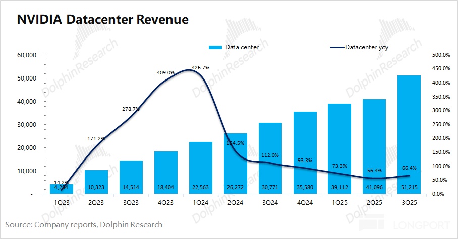 2.数据中心:本季度收入512 亿美元,环比增量为100 亿美元,主要是Blackwell 芯片交付上量。目前,Blackwell Ultra 架构已成为覆盖所有客户类别的主导架构,H20 产品占比极低,无足轻重。