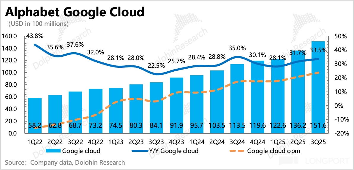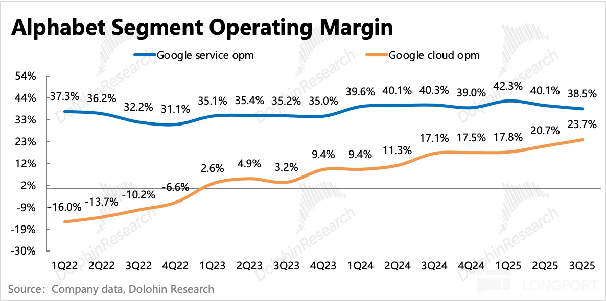 分業務來看,不僅谷歌服務業務環比走高(剔除罰款),雲業務利潤率也進一步提高至 23%。