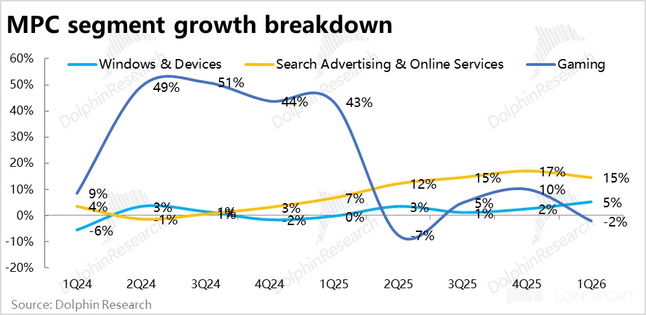 3) 遊戲板塊則因 Xbox 主機銷售不佳的拖累,收入跌入負增長